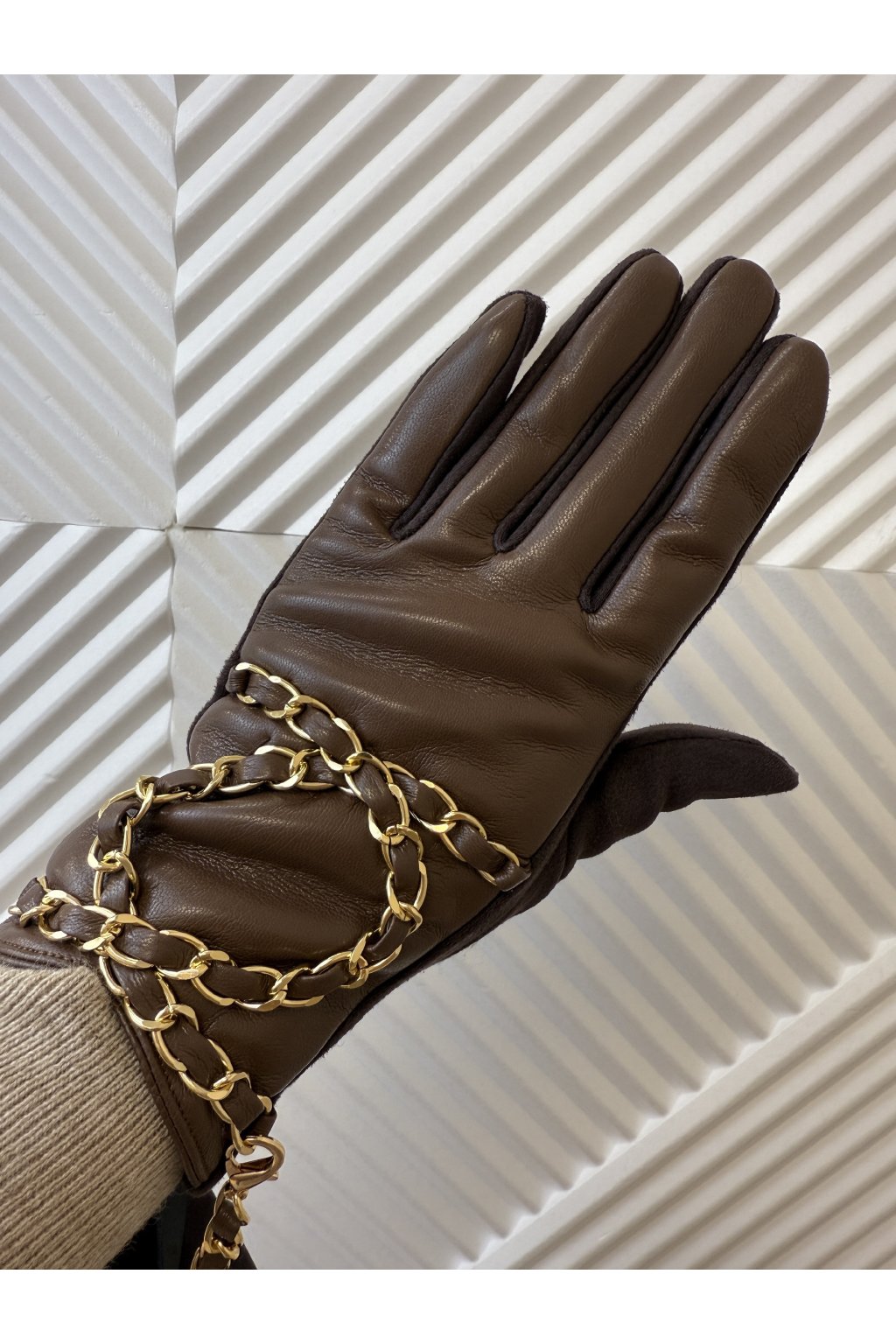 Koženkové rukavice čoko OĽGA