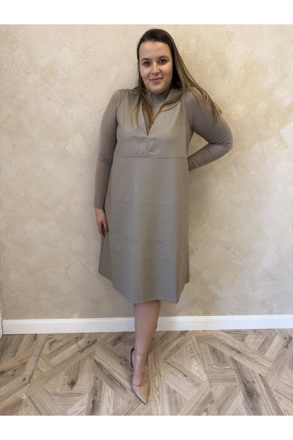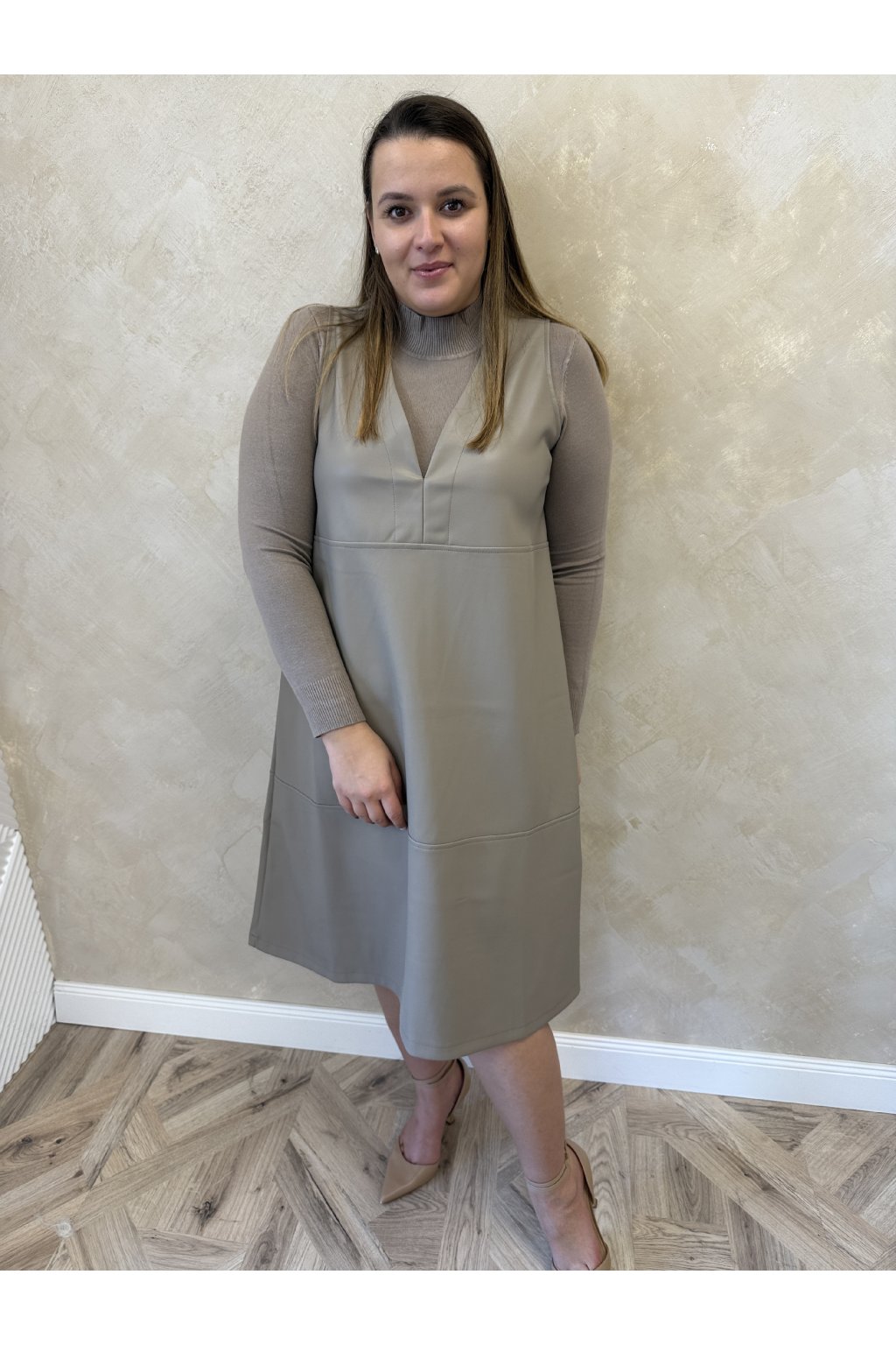 Koženkové šaty cappuccino MARY